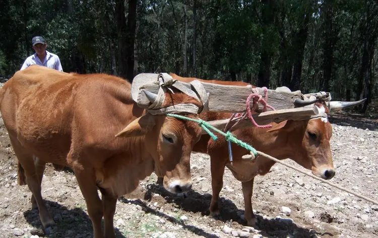 Trabajan con la yunta